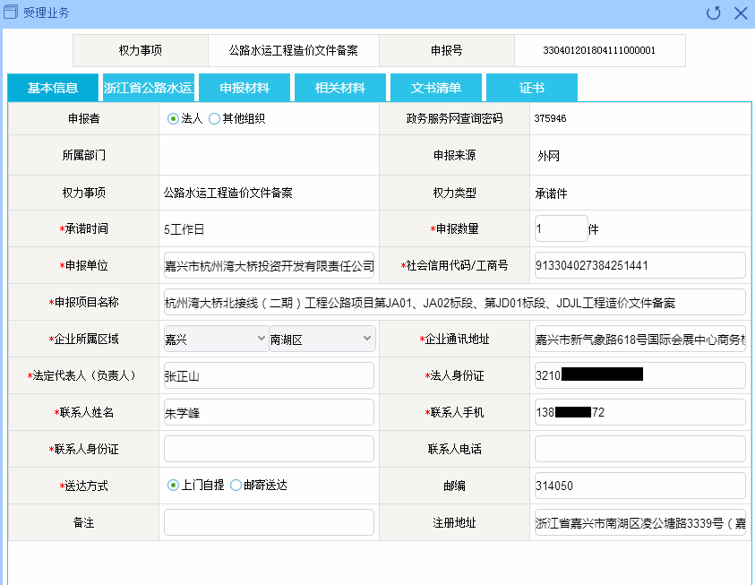 灣北二期工程第JA01、JA02標段、第JD01標段、JDJL工程造價文件備案服務信息
