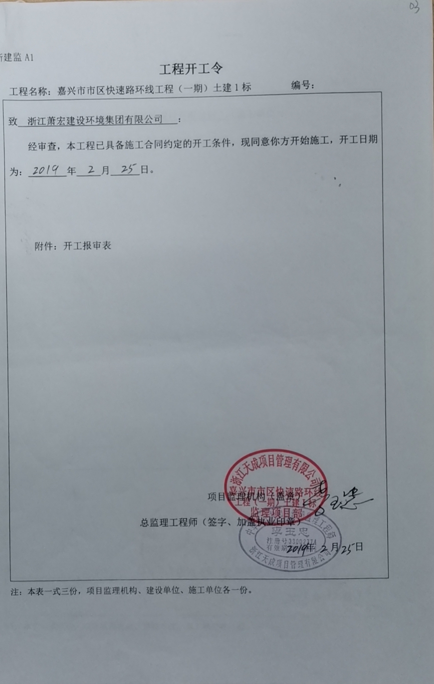 嘉興市市區(qū)快速路環(huán)線工程(一期)土建1標開工時間